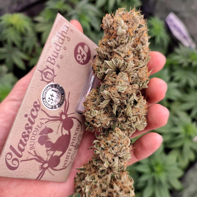 Buddha White Widow удивляет быстрым цветением, продуктивностью и высокой концентрацией смолы. Гибрид с преобладанием Индики отличается неприхотливостью и легкостью в выращивании, понравится начинающим гроверам за простоту, более опытные гроверы оценят силу и потенциал растения. Сроки созревания немного варьируются в зависимости от условий, но в среднем, будьте готовы к харвесту через 10 недель цветения в индоре. В открытом грунте растение отцветет к середине Октября. Когда мы говорим о высокой производительности, мы не шутим: 500-650 гр/м2 вкуснейших шишек в индоре, в открытом грунте в зависимости от климатических условий урожайность может достигать д 2000 гр с растения.