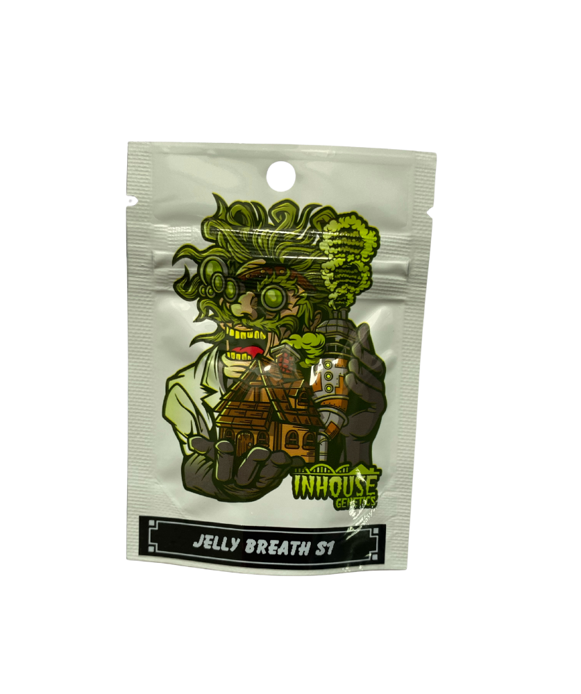 Jelly Breath S1 fem — фотопериодный гибрид, полученный на основе генетики Jelly Breath (North Cascade cut) x Jelly Breath. Сорт известен высоким содержанием смолы, насыщенным вкусом и сбалансированным эффектом. Растение формирует плотные, обильно покрытые трихомами соцветия с выразительным внешним видом. Окраска варьируется от глубоких фиолетовых и серебристых оттенков до ярко-зелёных и белых тонов, что делает сорт визуально привлекательным. Генетика объединяет сладкие, фруктовые и землистые ноты, создавая богатый и многослойный ароматический профиль.