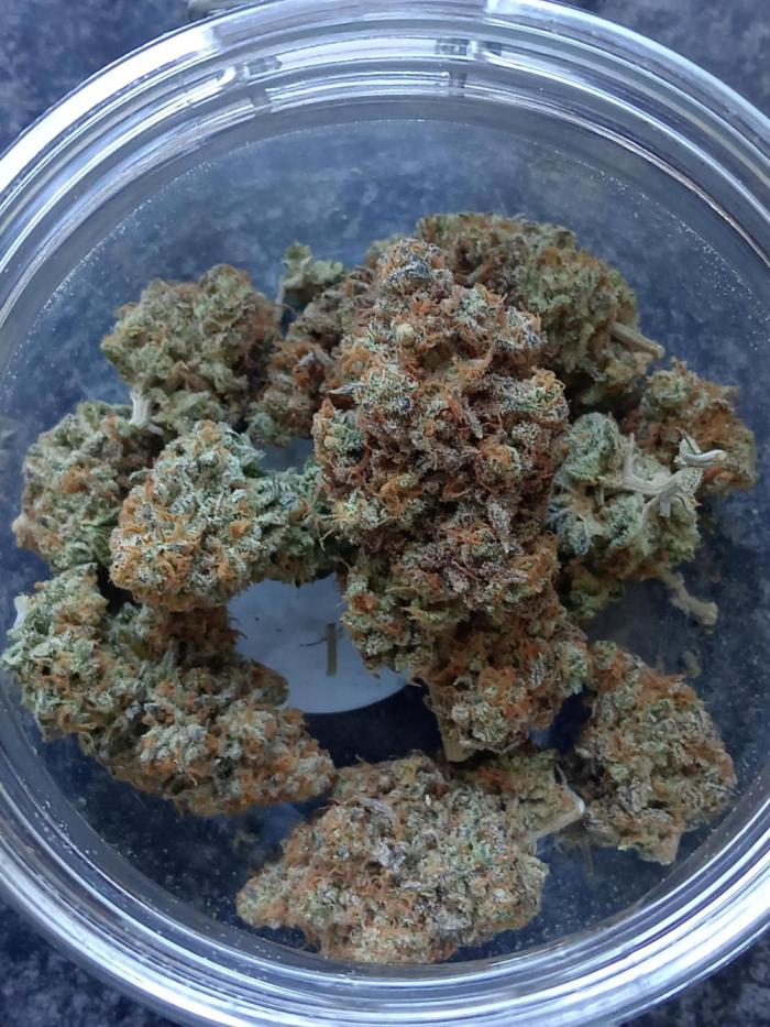 Странное, но потрясающее сочетание терпенов. Не плотные цветы, но красивые и супер морозные. Покрыты трихомами и идеальны для экстракции с помощью ледяной пузырьковой ванны.