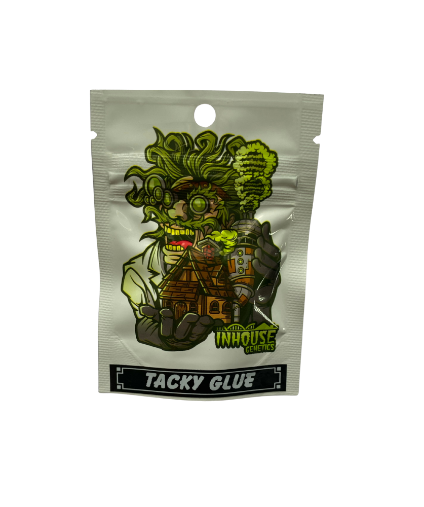 Tacky Glue — сорт, который формирует крепкое и выносливое растение с хорошей продуктивностью. Период цветения составляет около 8–10 недель (чаще 8–9 недель). Растение образует плотные, тяжёлые соцветия с высоким содержанием смолы и демонстрирует среднюю или высокую урожайность. Подходит для выращивания как в помещении, так и на открытом воздухе, стабильно показывая хорошие результаты. Благодаря обильному образованию трихом сорт особенно ценится для производства концентратов и получения насыщенного по аромату продукта.